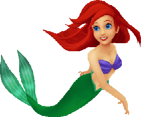 Ariel: Ariel is the sheltered daughter of King Triton; ruler of the seas. Ariel is naive and is very easy to fool, yet her curiousity and strength ofheart for outweigh her negative personality traits. She helps Sora in her curiousity to see what he and his friends are likes and in hopes of one day seeingnew worlds. Voice Actor: Jodi Benson First appearance in the Disney world: The Little Mermaid (1989)