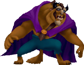 The Beast: The Beast is a large, incredibly powerful warrior. At first The Beast was a selfish, snobby prince, but when a witch cursed him he was transformed intothe hulking Beast. When Belle arrived at his castle they hated each other at first but quickly fell in love. When their world was invaded by the Heartless and Belle was takenThe Beast's pure strength of heart and his incredible will power allowed him to survive his worlds destruction and follow the Heartless to Hollow Bastion. Voice Actor: Robby Benson First appearance in the Disney world: Beauty and the Beast (1991)