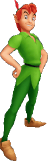 Peter Pan: The little boy who will never grow up because he lives in Neverland. He is a trickster and enjoys fooling with Hook and his Crew's minds and ego.Thats all I have to say...and thats basically all the back story Pan has. Voice Actor: Chris Steele First appearance in the Disney world: Peter Pan (1953)