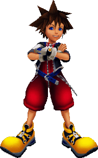 Sora: Sora is a fourteen year old boy from The Destiny Islands. Sora can seem simple minded but thats only because he focuses on what he sees as important; friends and family. No matter where he is or what he is doing if he is with his friends he'll never give up. Sora is, obviously, in love with his friend Kairi, they have lived together on The Destiny Islands for years along with Riku, Sora's best friend. The three are closer then most friends and Sora's entire quest is centered around finding them after the destruction of their home. Voice Actor: Haley Joel Osment First appearance in the Disney world: Kingdom Hearts (2002)